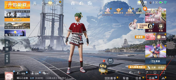 1、打开《和平精英》手游,并点击屏幕下方的【仓库】按钮,进入仓库页面。