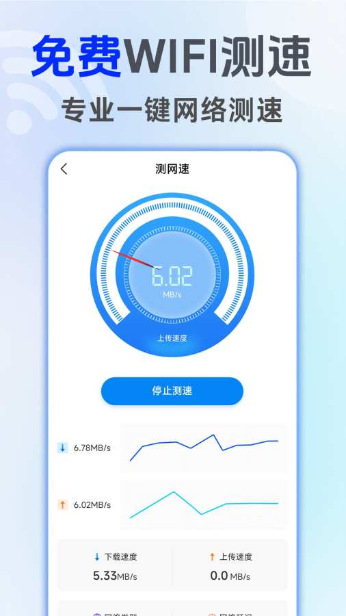 1、能够测试当前网络安全性、速度的应用,可更轻松上网。